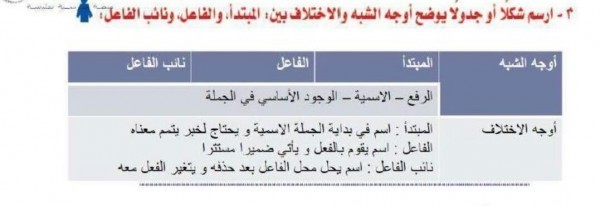 ارسم خريطة معرفية اقارن من خلالها بين الفاعل ونائب الفاعل بالاستفادة مما تعلمته في الوحدة الاولى موقع اسئلة وحلول