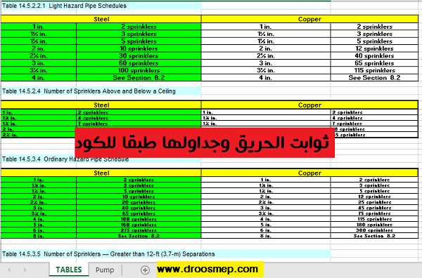 ملخص الكود العالمي لمكافحة الحريق Nfpa شيت اكسل Droos Mep