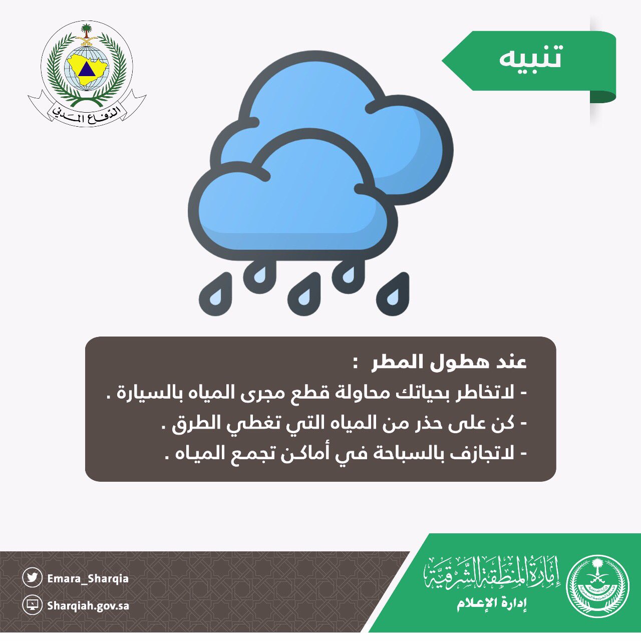إمارة المنطقة الشرقية On Twitter تنبيه عند هطول الأمطار